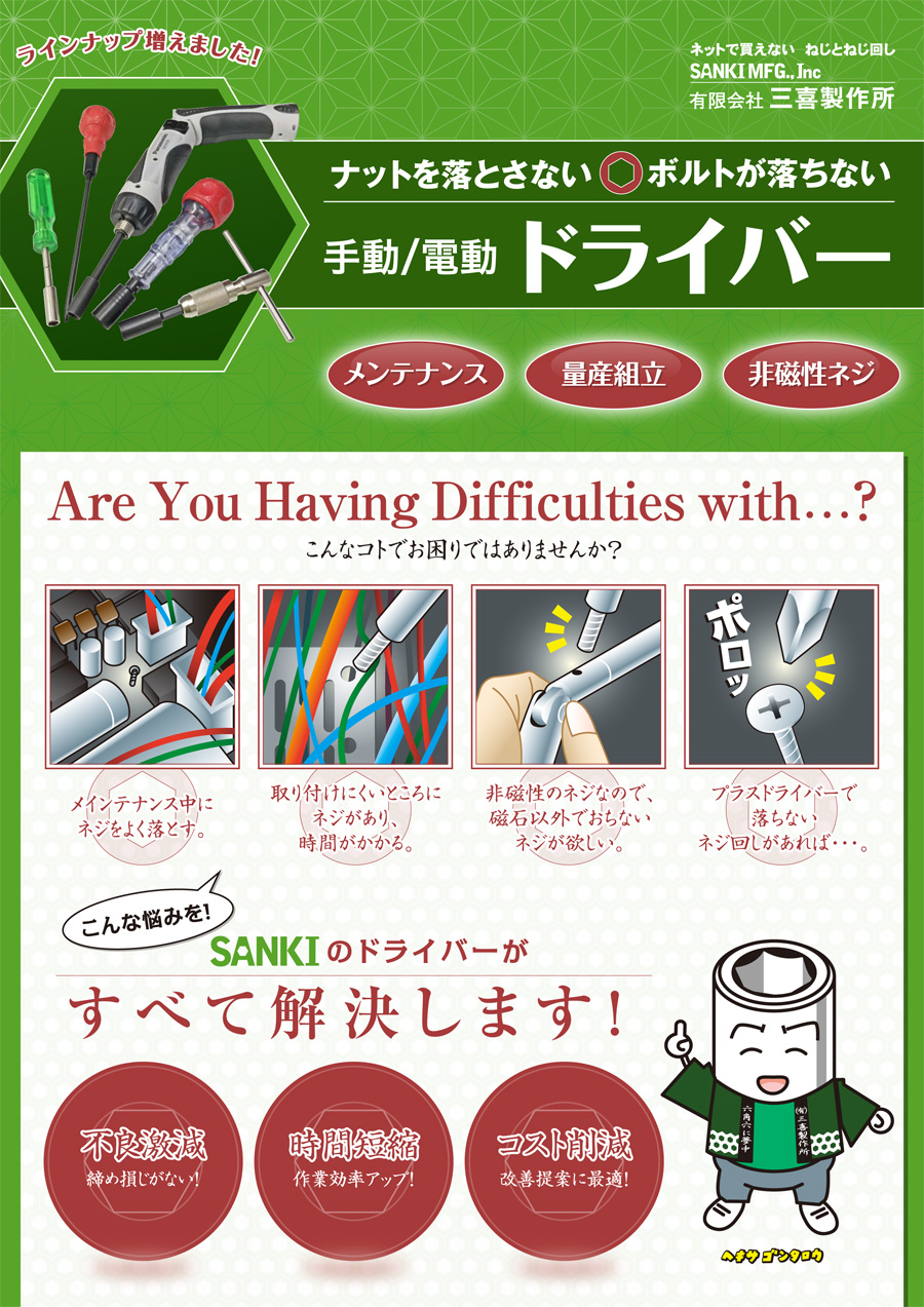 現在お使いのねじやナットと使用工具を拝見させて頂ければ、