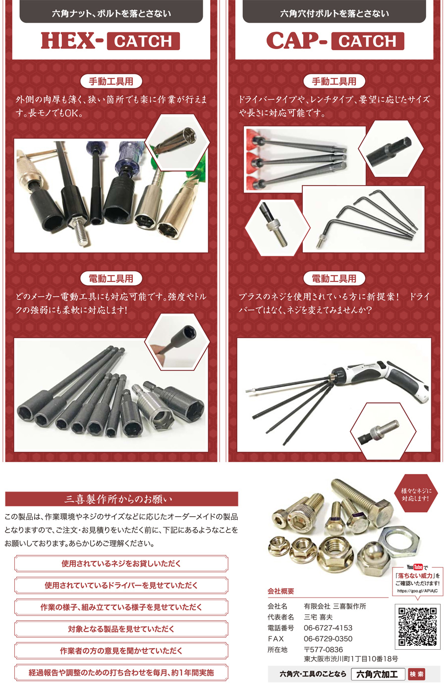 ◆六角穴の対辺の寸法が、1.5mm~14mmまで対応可能