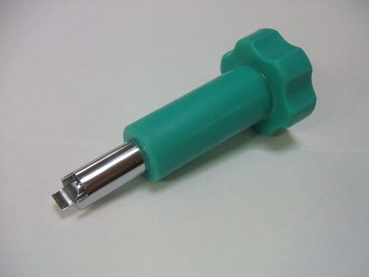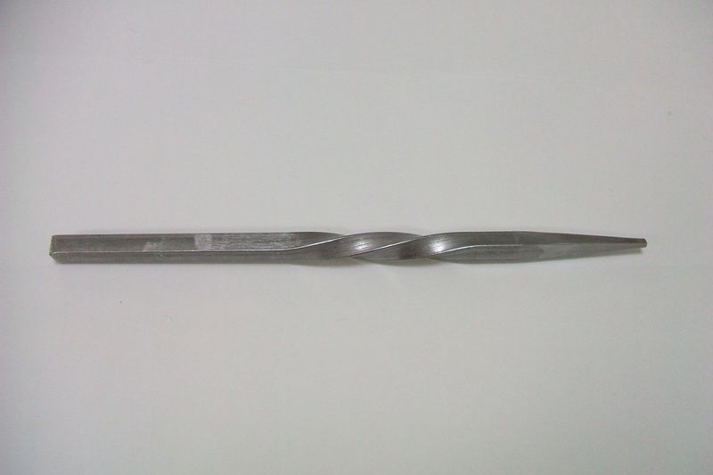 ねじり加工をプレスで加工しています。自動車等のタイヤパンク修理に使用されています(自転車タイヤパンク修理用)